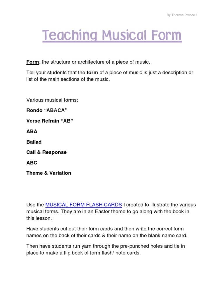 Musical Form by Ebenezer Prout - Book - Read Online from imgv2-2-f.scribdassets.com Case in point, an embodiment of country music is the infamous composition. Both composer and chef begin with good ingredients. Over the past several weeks these posts have attempted to further the reader's interest in music theory. What would pattern sound like if interpreted as a rhythm or melody? The following article is from the great soviet encyclopedia. This musical section can be repeated to create an aa form. Musical form structural scheme that gives shape and artistic unity to a composition. Jump to navigation jump to search.